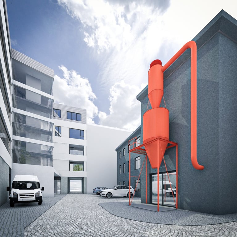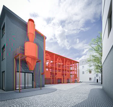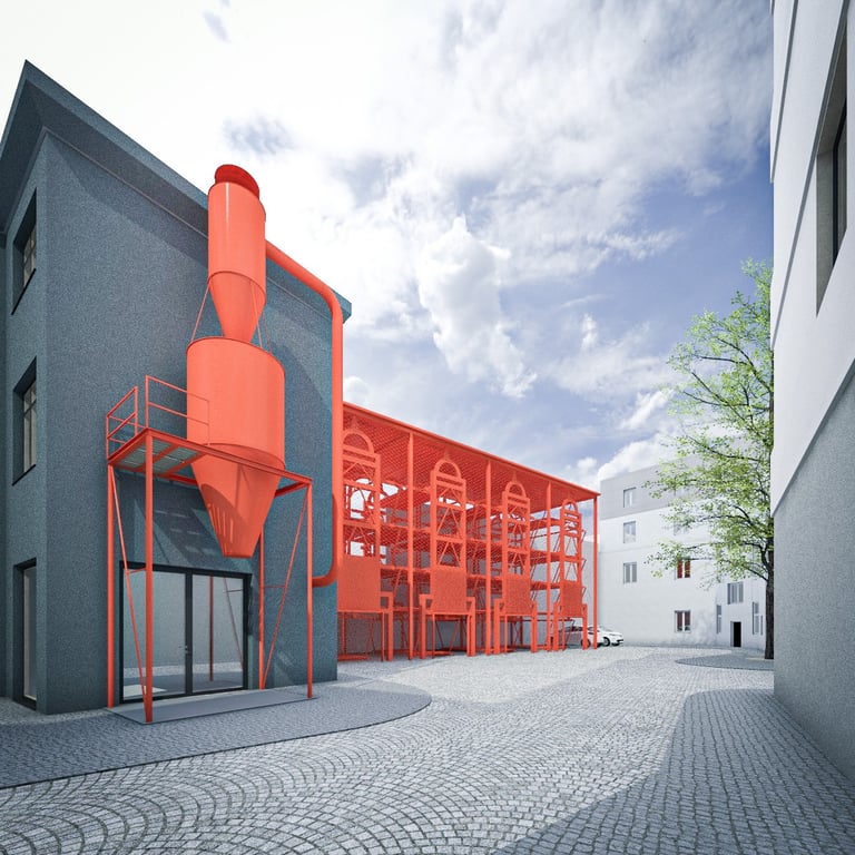 Projekt zachovává původní industriální prvky bývalé truhlářské dílny,